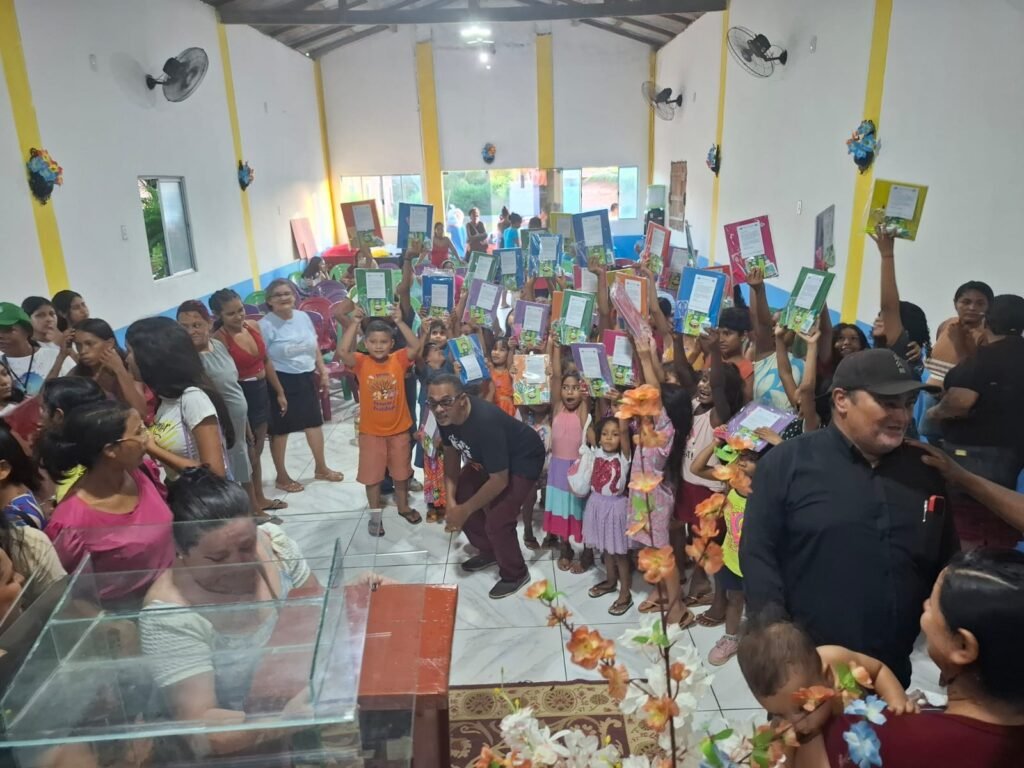 Julho de 2025. Ação social missionária desenvolvida na comunidade Nova Esperança em Barcarena Sede. Distribuição de Kits volta as aulas; apoio dos líderes comunitários Pr Sandoval, Pr Wagner e Pb Ricardo